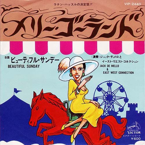 【7"】JACK DE MELLO / Merry-Go-Round (VICTOR)男は四白眼・女は切れ長のオリエンタル瞳が多いよう、お好みなのでしょう。ハワイ系イージーでお馴染のジャック・ディメロによるこの「メリー・ゴーランド」では、半眼気味の魅惑的なお姉さまが。梶芽衣子的な目力を湛えてます。