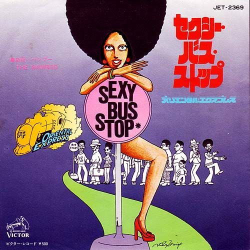 女性ものというとやはりエモリ・ジャケで一番売れたであろうオリエンタル・エクスプレス「セクシー・バスストップ」は外せませんな。言わずと知れた筒美京平ディスコの名曲。体はどうなってるのかバス停から長い足がにょきっと。アフロの過剰なデカさもいいですね。