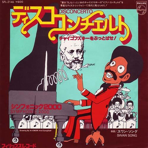 【7"】SYMPHONIC 2000 / Disconcerto (PHILIPS)ギャングスタッフ名義のレコをさらに。何でもありの時代到来です。シンフォニック2000の「ディスコ・コンチェルト…チャイコフスキーをぶっとばせ!」。クラシックとディスコの融合という事でチャイコフスキーの似顔も飛び出す変則ディスコですね。