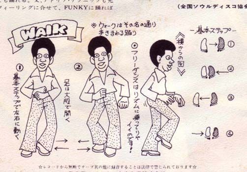 セッション・ヴォーカリストとして活躍していたミルト・グレイソンがマイケル・ゼーガーとのコンビで録音した76年のポップ・ディスコ名曲「ディスコ・ウォーク」。ステップ解説の足跡マークになってます。ようく見るとまつ毛でお目目パッチリ。