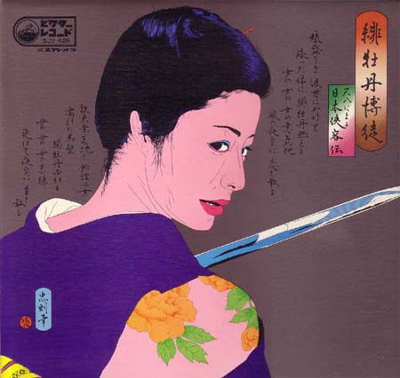 【LP】村岡実(尺八)/ 緋牡丹博徒〜尺八による日本侠客伝 (victor)斬った張ったの任侠世界を綴る「妻恋道中」「吉良の仁吉」「潮来笠」「流転」等を村岡実の尺八で。よくある“歌のない歌謡曲”系のレコなんですが、ジャケット・デザインを横尾忠則が担当してるとあっちゃ見過ごせない!盤スレ多めです。2500円