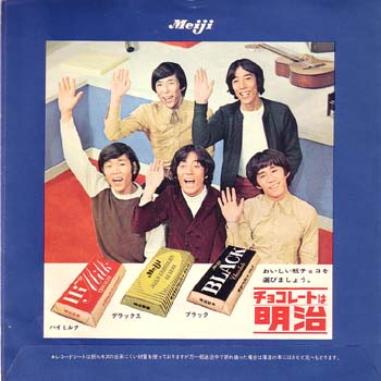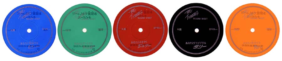 明治といえばこちらもそう。遡って68年、「タイガース・デラ・プレゼント」キャンペーンのプレゼント配布用に制作されたシートレコードです。メンバー個人別のシートがあり、「あなたにささやくジュリー」・「あなたとデートするトッポ」・「あなたとドライブするサリー」・「あなたに電話するピー」・「あなたと散歩するタロー」などと各々に語りかけてくれちゃうシロモノ。アイドルど真ん中な企画ですね。外袋は全メンバー共通のもので、裏ジャケットの写真が最高!メンバー全員分の5枚セットです。2800円