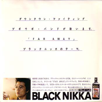 DTBWBは79年大晦日〜81年大晦日までの2年間、「ダウンタウン・ファイティング・ブギウギ・バンド」と改名し活動していました。そのDTFBWB時代に制作されたのがこちら!酒造メーカー・ニッカウヰスキー“BLACK NIKKA”の販売促進レコード「FAR AWAY」です。コピーの“品質の原点 ブラックニッカ”に相応しいシンプルなロッカバラード!千野秀一のオルガンが非常にいい味を足してます。“G.S. 恋唄 Yesterday もやのかかった思い出遥か”なんて歌詞(作詞:阿木燿子)はやっぱDTBWBならではだなァ。CMにも出演していた根津甚八が浜辺で佇むジャケットもカッコイイ!!どこからグラスを持ってきたかはツッコミなしよ。1800円