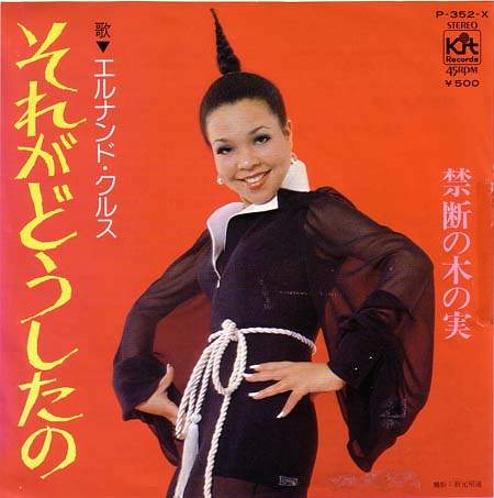 【7"】エルナンド・クルス/ それがどうしたの (kit)本年度インパクト・ジャケ大賞決定か!?すさまじい髪形・・。このシングルがデビュー曲です。イントロのソウルフルなコーラスに期待が膨らみ、全日本歌謡選抜で10週勝ち抜いた実力を思う存分発揮する歌い上げ歌唱(コブシ入り)で昇天!ハスキーヴォイスかと思いきや声やたら高いし・・。彼女、後にエルナンドと改名し、エレック・レコードから再デビュー。ノリノリの和製ディスコ盤を数枚リリースしてます。人に歴史あり・・。ジャケットにテープ跡、盤はきれいです。見本盤、1000円