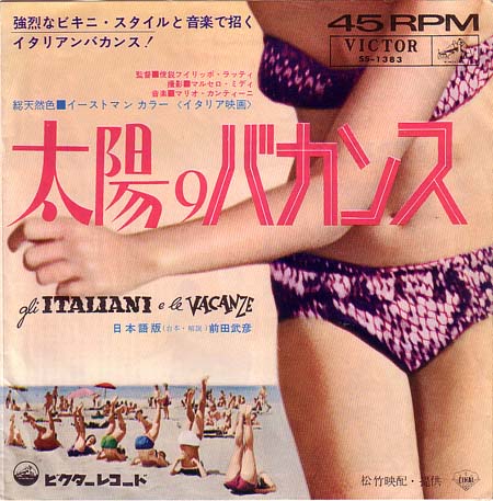 イタリア映画『太陽のバカンス』より、ジャンニ・モランディの歌う同名テーマ曲を。あの「サンライト・ツイスト」に負けず劣らずのゴキゲン・ツイスト・ナンバー!こりゃええわ!もともとは「恋の悩みをぶっ飛ばせ」なるタイトルで発売されたらしい(カップリングの「デイト・タイム」がA面扱い)ですが、映画での歌唱シーンが印象的で変更になったとか。最初のほうが曲調に合ってるけどね。なんでもいいけどぶっ飛ばせ!的ノリありますもん。裏ジャケットに名前のハンコ、盤はまあまあ良好です。2000円
