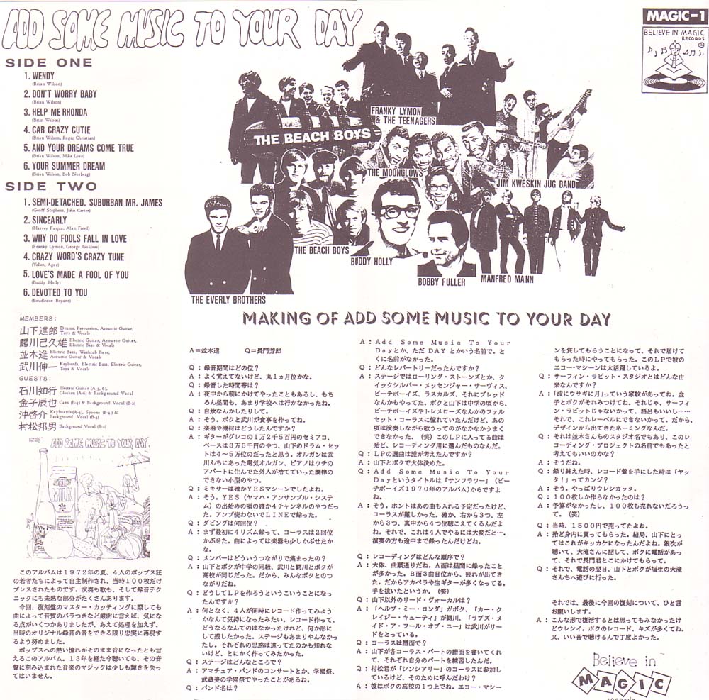 レコーディング順序は大体曲順通りらしいです。で、B面3曲目辺りで疲れが出てきたんだって!アカペラや生ギターが多くなっているのはそのせいだと並木氏は語っています。すごいおもしろいっす、長門芳郎氏との対談形式になってるライナーノーツ!
