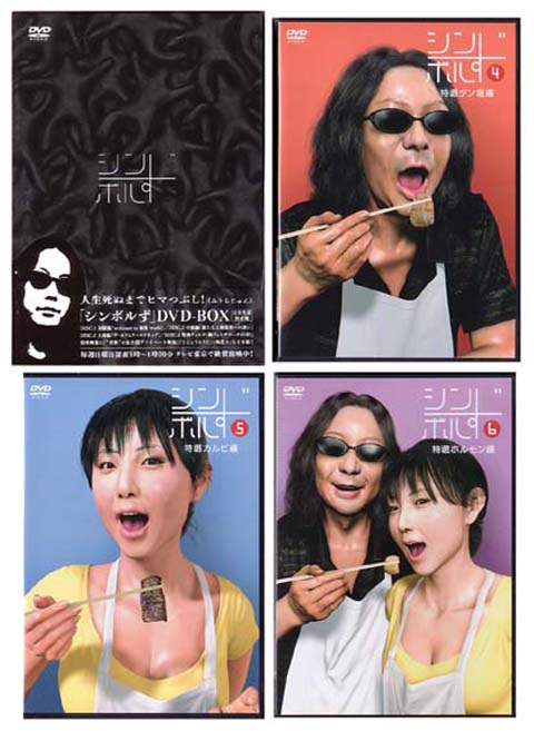 続いてもMJモノをご紹介。みうらじゅんとMEGUMIによる深夜番組「シンボルず」(テレビ東京)もなかなかいいゆるさを湛えた作品です。町の埋もれたアート作品“シンボルず”やグッズなどにスポットを当てるというもの。“ヌー銅(ヌード銅像)”“マネキン”“犬シール”“マニア向けタワー”など、ここでも思わず脱力のバカ・ワードが並んでます。みうらじゅんの番組は基本的に彼の自由すぎるプレゼン大会というフォーマットである事が多いのですが、ここまでサービス精神の塊な人もそういませんぜ。尊敬に値するけど実際に身近にいたらと思うと恐ろしくもあり。初・中・上級編と銅像にしたい有名人No.1の松崎しげるを迎え行われたイベント「銅フェスサマーナイト07」を収録した特典盤付の限定ボックス(4枚組)と、後続の《特選タン塩編》《特選カルビ編》《特選ホルモン編》の3本を併せた計7枚・全DVDシリーズをセットで!美品です。11800円