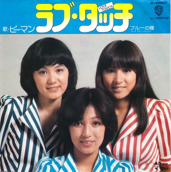 後にサーカスに参加する叶正子在籍とかはもう有名過ぎるお話ですよね。YAMAHAが送り出したむちむちアイドルトリオ、ピーマンの'74年作「ラブ・タッチ」7吋。ワーナーらしいフォントに萌えるジャケ、デビュー曲「恋のライバル3対1」の時みたいにホットパンツ姿見せて欲しかったけどまあ贅沢は言えません。作詞:千家和也、作曲:林山諺、編曲:小林南によるナイスなスリー・ディグリーズ歌謡。