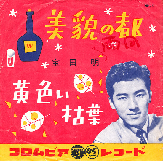 ダンディ極まりない宝田明ですが若い時の美形っぷりに驚かされます。1957年に発売された二枚目ムード歌謡「美貌の都」7吋盤です。作詞:西條八十、作曲:上原げんと。都会の男女の、ある意味さっぱりした恋模様をムーディサウンドに乗せて。
