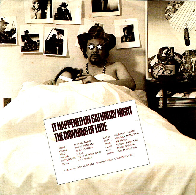 作詞:山上路夫、作・編曲:村井邦彦、演奏:THE JAZZ ROCK BAND、コーラス・ALFA SINGERS。顔も知らない二人が生み出す一夜限りのグルーヴに我々は痺れ続ける!
