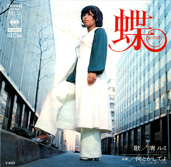 清(きよし)ルミの'71年作「蝶」7吋盤です。作詞:阿久悠、作曲:鈴木征一、編曲:馬飼野俊一。歌詞、サウンド、そして歌声‥全てが完璧なやさぐれソウル歌謡〜
