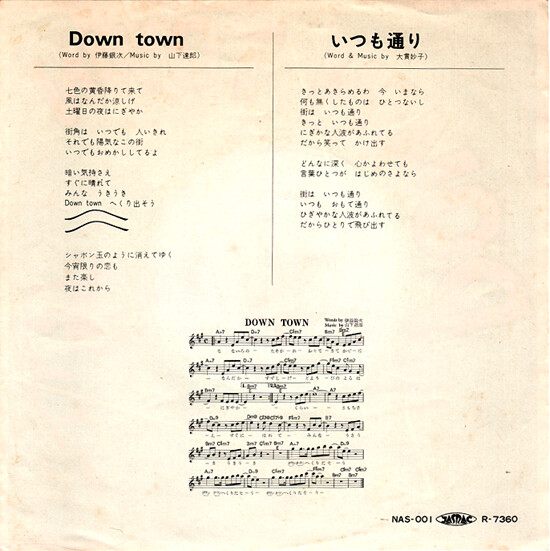 【7"】シュガー・ベイブ/ ダウンタウン (ELEC)