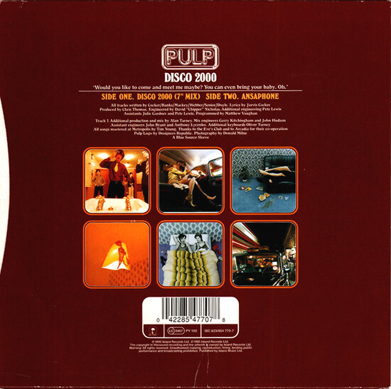 ブリット・ポップと括るにはキャリアが長い!でお馴染み、今年始めの来日公演も好評だったジャービス・コッカー率いる英国バンド:PULPの'95年作「DISCO 2000」7吋盤です。12"じゃなく7"!