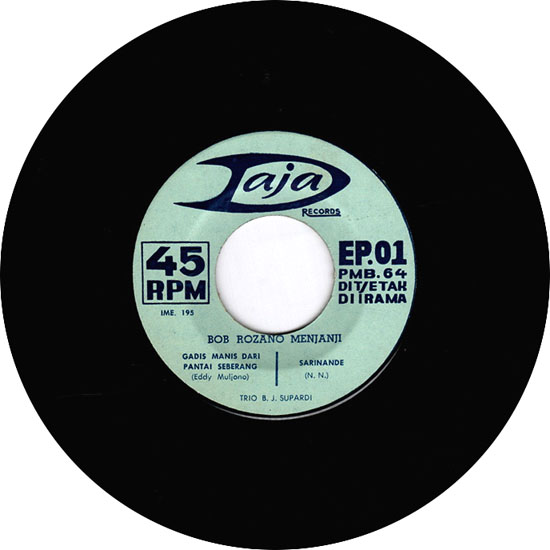 インドネシアの著名歌手BOB ROZANO MENJANJIの'64年作EPです。魅惑の低音系ヴォイスでしっとり歌い上げてますが、A-2「sarinande」がとても素敵でした。