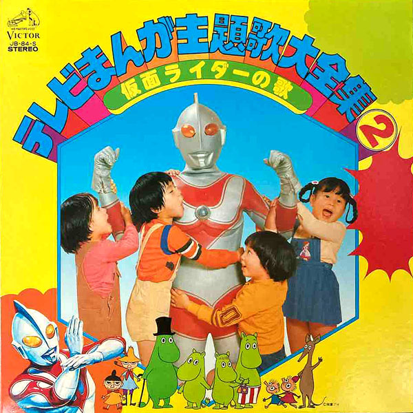 副題の割にジャケに仮面ライダーがいないでお馴染みの主題歌集LP。ドレミファ・コーラス版「ゲゲゲの鬼太郎」収録もテンション上がりますが、子門真人が歌う「帰ってきたウルトラマン」を聴けるのもポイント!