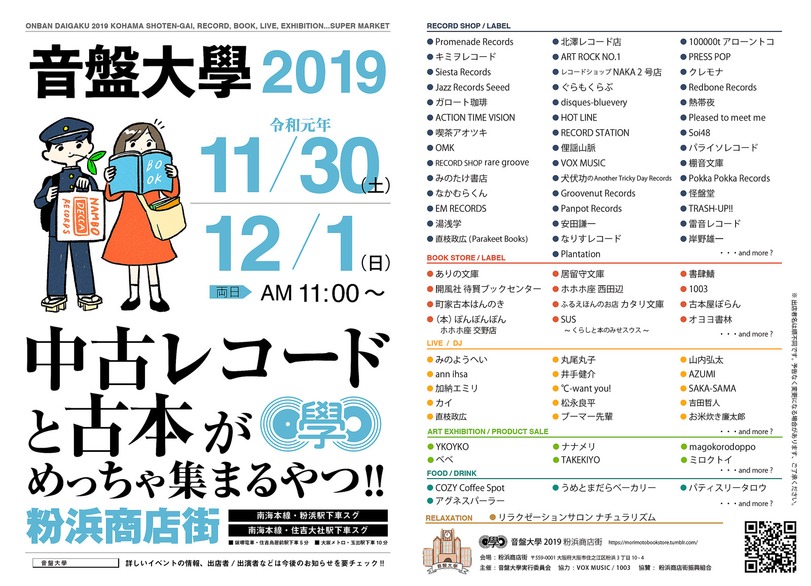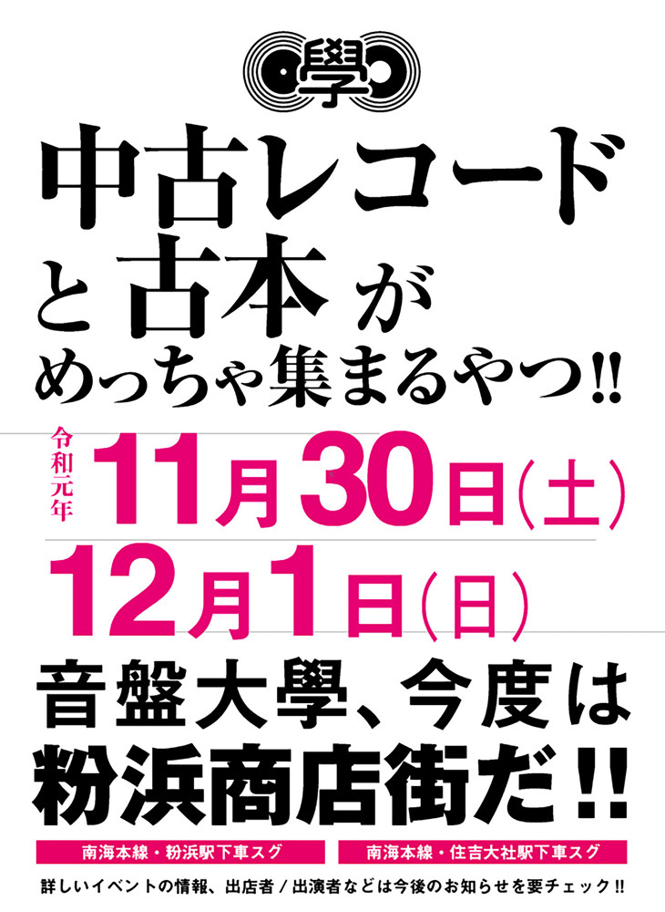 11月30日〜12月1日は粉浜商店街で行われる音盤大學2019に参加します。