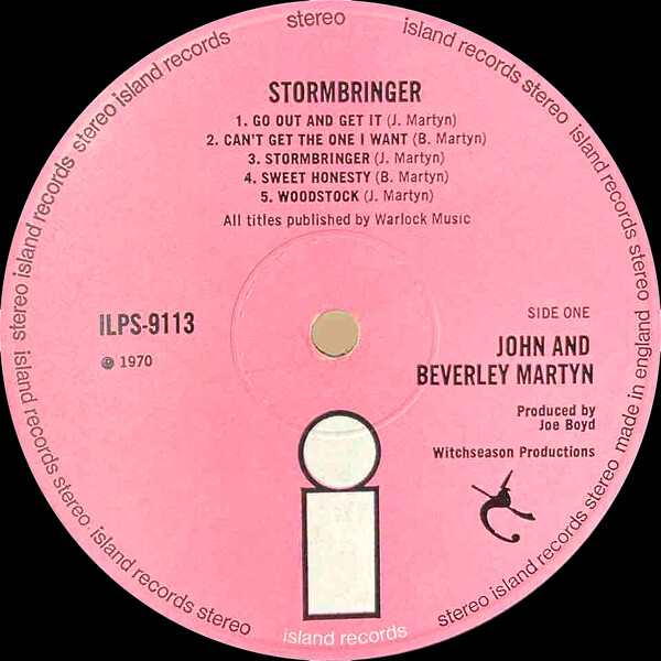 ジョン&ベヴァリー・マーティン夫妻による'70年作『STORMBRINGER』LPです。フェアポート・コンヴェンションやピンク・フロイド絡みのお仕事でお馴染みのジョー・ボイドがプロデュースということで英トラッド・フォーク・ロックのええとこが詰まった安心の出来栄えになってます。