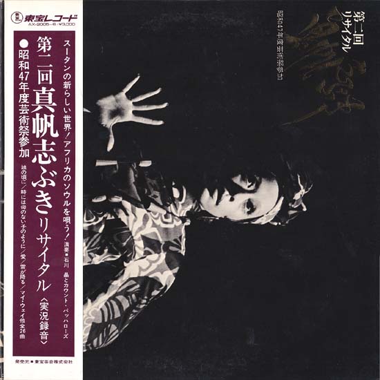 雪組男役トップスター真帆志ぶき'73年の実況録音盤。LP2枚組、演奏は石川晶とカウント・バッファローズが担当。アフリカのソウルを唄う!とのキャッチフレーズ通り、特にDISC:1の黒いビート&リズムっぷりに度肝抜かれます。