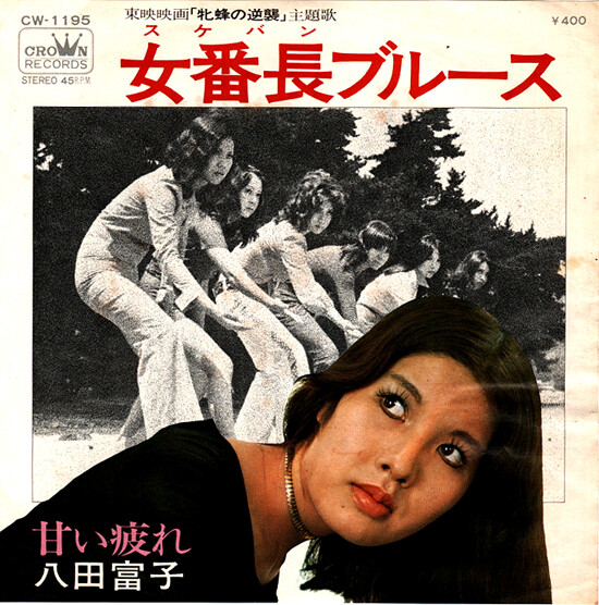 東映映画『牝蜂の逆襲』主題歌、八田富子が歌う「女番長ブルース」7吋盤です。女番長と書いて当然スケバンと読む。